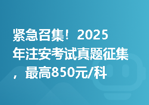 紧急召集!2025年注安考试真题征集,最高850元/科!
