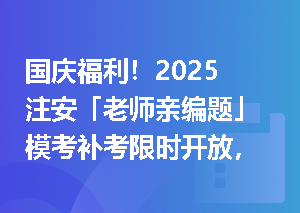 国庆福利!2025注安「老师亲编题」模考补考限时开放,别让遗憾延续!