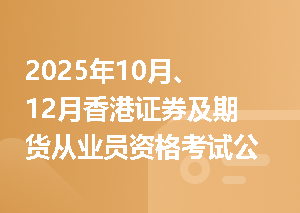 中国证券业协会发布了《关于2025年10月、12月香港证券及期货从业员资格考试的公告》,确定10月18日、12月6日举行香港证券及期货从业员资格考试,报名9月15日起,详情如下: