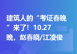 建筑人的“考证春晚”来了!10.27晚,赵春晓/江凌俊等带你解锁“考证→升职→加薪”闭环!