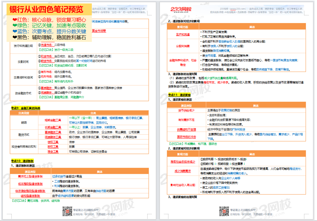 四色笔记根据近三年的银行从业考试真题趋势,对近三年知识点进行了梳理与筛选。最后保留了多考考察的核心的高频考点。