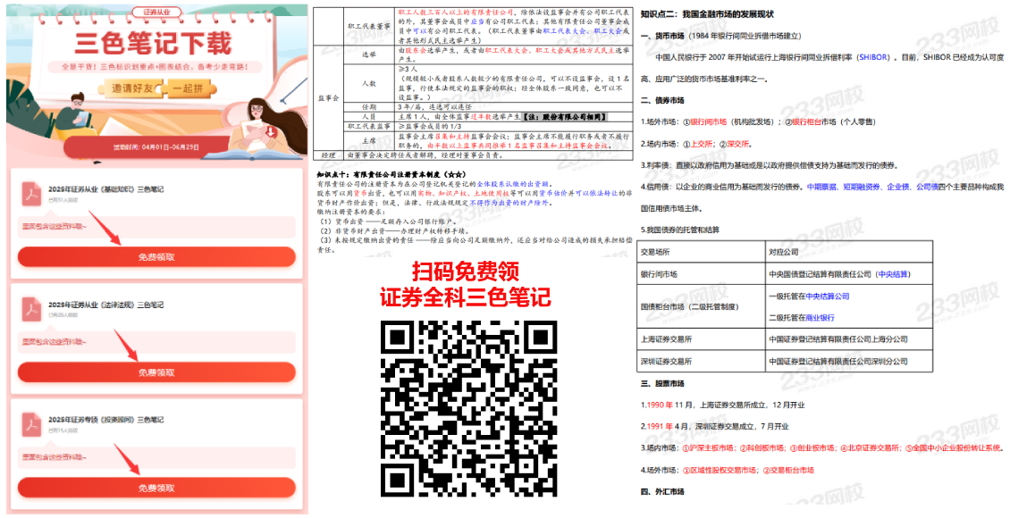 三色笔记根据近几年的证券考试考试真题趋势,对近几年知识点进行了梳理与筛选。最后保留了多考考察的核心的高频考点。