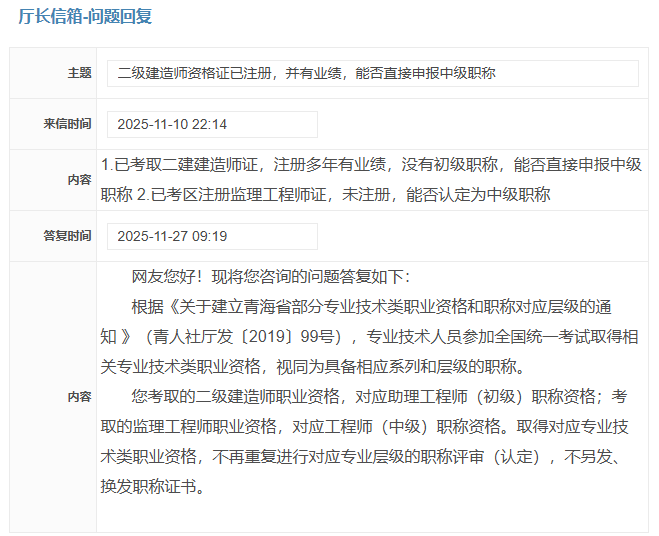 内容来源:青海省人力资源和社会保障厅 厅长信箱回复