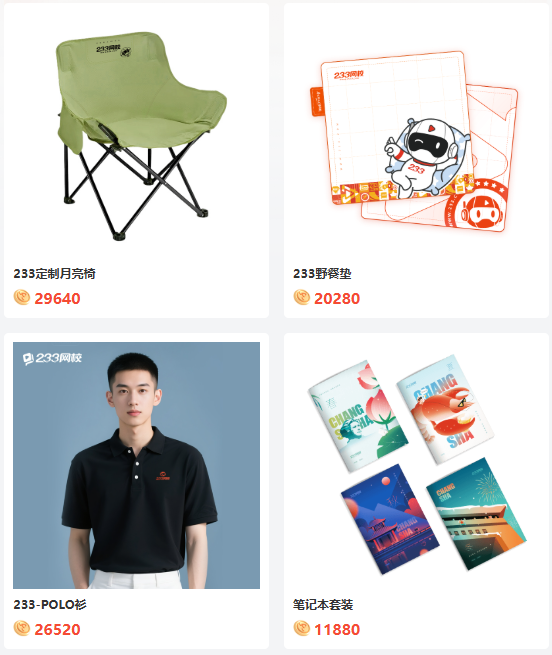 5、兑换233网校周边:233积分可以同比例兑换考证币,去233商城兑换品牌周边噢!【