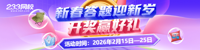 马年春节,除了团圆、红包和年夜饭,还有一件更重要的事——给自己“加码”。233网校春节福利全面上线,答题抽奖、登录领币、签到翻倍三重好礼,搭配知识点打卡+闯关+组队三大学法,让你过年不虚度,考证更轻松!
