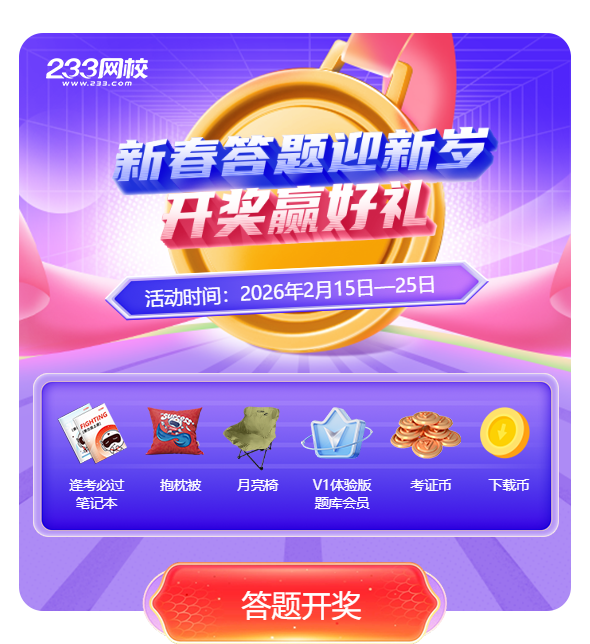 答题行动起来,让这个春节不仅有欢声笑语,更有知识的光芒照亮前行的路!在233网校,让我们一起以学习之名,迎接充满希望的新一年。快来加入这场智慧与幸运的双重挑战,让奖品成为您新年努力的最好见证!