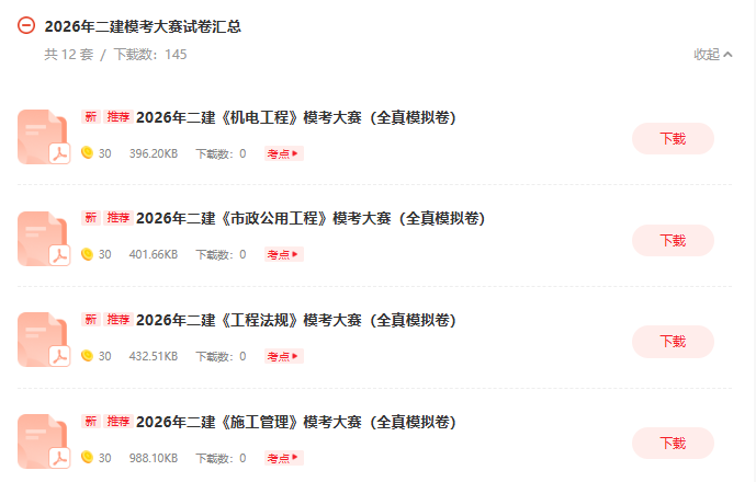 2026年二建考前模考大赛安排如下: