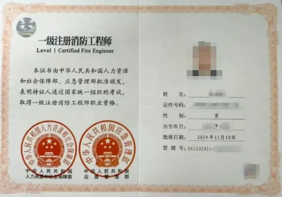 2.《注册消防工程师执业资格证书》原件及复印件或注册消防工程师考试成绩证明(复印件2份留存);