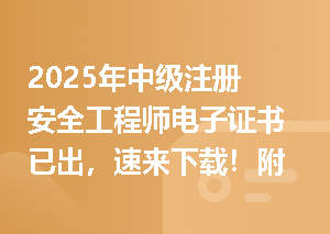2025年中级注册安全工程师电子证书已出,速来下载!附证书样本~