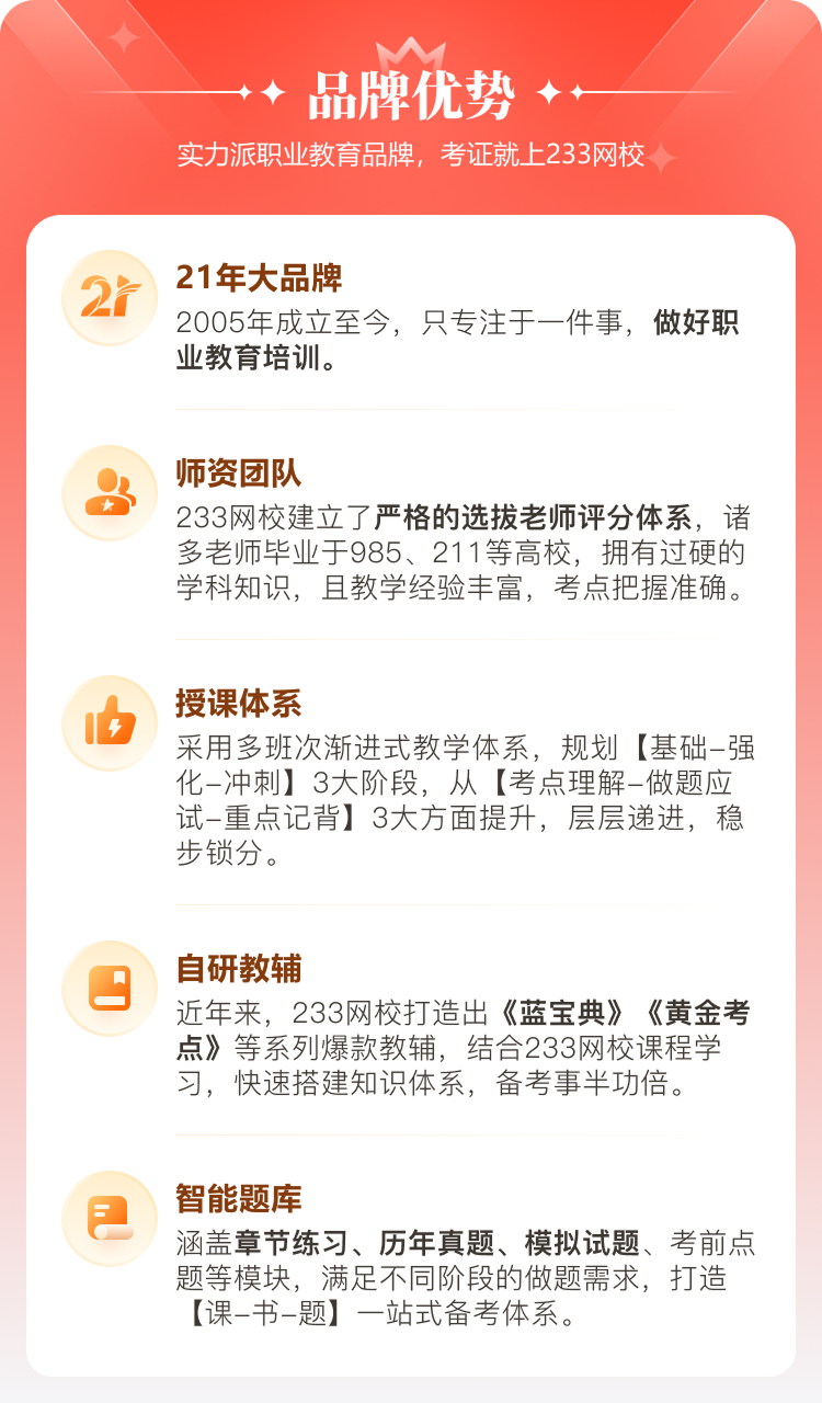 233网校涵盖建筑类、金融类、财经类、职业资格类共20多种考试内容,欢迎切换其它考试课程辅导内容。