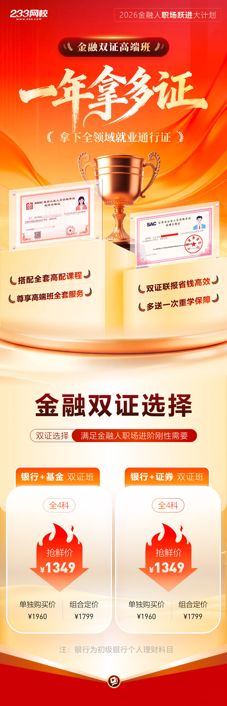 银行+基金双证班,拿下金融行业从业晋升"双保险",一年拿两证?