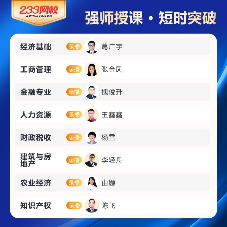 经济基础 人力资源 金融专业 工商管理 财政税收 建筑与房地产经济 农业经济 知识产权